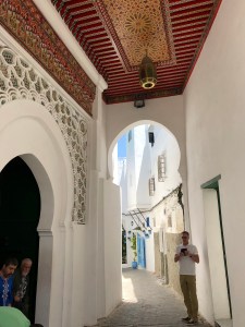 Not willing to get lost in the medina by ourselves, we booked a tour, one I had taken two years prior. After scouring the internet for a reputable tour company, I found Saïd (pronounced Sah-yeed) Tours. With nearly 1000 five-star reviews on Trip Advisor, I was willing to trust that we’d be well-taken care of. And we were! We booked the date in advance, and then met Saïd, himself at the port, who, coincidentally, reminded me of a Moroccan Anthony Bourdain. He walked us to our tour guide, Khalid, and off we went in car and walking. Depending on what you want to see and do, a 3-hour walking tour, with lunch (you pay, I believe) is roughly 50 euros per person, which includes a drive out to the beach, the Hercules Caves, a camel ride, a stroll through the medina and the kasbah, lunch and possibly a quick visit with a snake charmer. We passed on the snakes as Doug has a phobia of them. We opted instead for a stroll through the Petit Socco to see the Cafe Tingis and have a mint tea. You are expected to tip in Morocco and we typically tip well (20%).