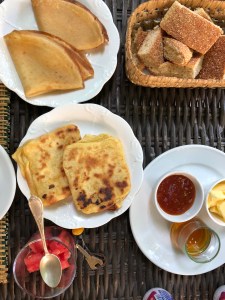 Poverty and wealth too mix side by side. As soon as you come off dusty dirty streets another world awaits behind massive wood doors. This is the secret of the Moroccan medina. From the outside everything looks the same. Rich, poor. No difference. A dusty beat up door can open to poverty or paradise. And the people take their modesty very seriously. By dusk, we located our “riad” (actually a converted mid-19th century villa) the Mimi Calpe, at 71 Salah Eddine El Ayoubi street, formerly known as the Beach street. Boutique in every way imaginable, except perhaps the price, Mimi Calpe has an elongated pool atop the hill behind the gardens, lounge rooms, views, privacy, stunning bedrooms and suites (we stayed in the two bedroom suite), and the absolute best breakfast in town. My suggestion: have breakfast at sunrise in the garden. You can hear the distant Call to Prayer, while a sleek white cat purrs sleepily at your feet.