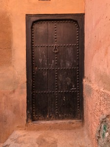 This is probably my favorite hotel. Ever. And this is what I’ve realized: I don’t need lavish. I don’t need luxury. I need modest, sturdily built. I need winding stairways that lead to secret corners. I need bright sunny courtyards and a room with a stone floor and huge screenless French windows that open onto blue pools and floral, tiled patios and gardens. I need quiet, with the promise of chaos and excitement five minutes walk away. I need 300-year-old Moroccan doors with latches of iron and keyholes the size of a blue bird. I need walls decorated with Berber rugs and local paintings and books and wooden bowls from hundreds of years ago. I need an old walnut desk. I need a toilet that is in a separate room from the shower. I need 20 foot ceilings with vigas.