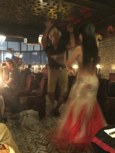 Anyway, it was getting late, and we were definitely hungry. Sadly, we really only knew how to get back to the square, and we didn’t do much research on restaurants (we thought we’d be eating on the train). So, we ended up at this busy, touristy spot, which had fabulous couscous and tagine, and belly dancers to boot that danced with trays of lit candles on their heads (no thanks). A bigger perk than the dancers and great food? We got to watch the sun set over Jemaa-el-Fna.