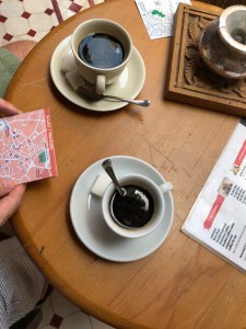 Lunch was in the souks. I had read about the Terrace des Epices, a popular restaurant in the spice district, and we somehow stumbled upon it and grabbed a seat. We had lunch next to a blond woman from Louisiana and her two daughters. The first thing she said was how thrilled she was to meet other Americans. That she hadn’t met many here. I found that surprising. Then again, you know, Trump. I think many of us feel unwelcomed in many parts of the world because of his policies and tariffs. Then she proceeded to tell us that she can’t grasp how any of the shop owners make any money because there are so darn many of them. I actually had the same thought earlier. I mean there are gazillions of shops! Then she added that she bought something but didn’t haggle. “What’s $50 to me? For these people it’s a week’s wages. Why bother haggling.” Hmmm…. I’m not sure I agreed with her on that one. However, we did agree on one thing, she said, “I feel safer here than in Whole Foods back home,” which led to a few laughs and a dark, depressing convo on school shootings. Her one daughter is studying in Barcelona. My youngest son is studying in Madrid. We both acknowledged a sense of relief that our children were not attending universities in the states, and how happy we were that they were getting an international education.