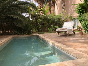 Because it’s off season, we have been generously upgraded to a suite with a terrace and our own private pool, a room that typically goes for $800 a night. It’s dreamy and rich, almost too good to be true. We sunbathe sans clothes, sans bathing suits, the hot sun between our naked legs. An occasional cat prowls in, under the bushes that make private our little space. Who says you have to cover up in Morocco?