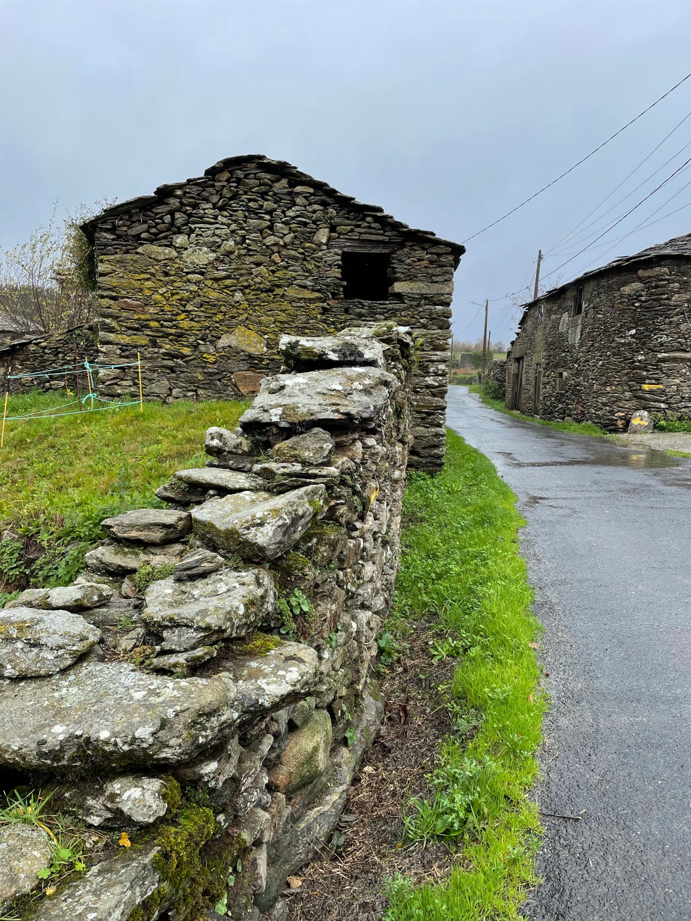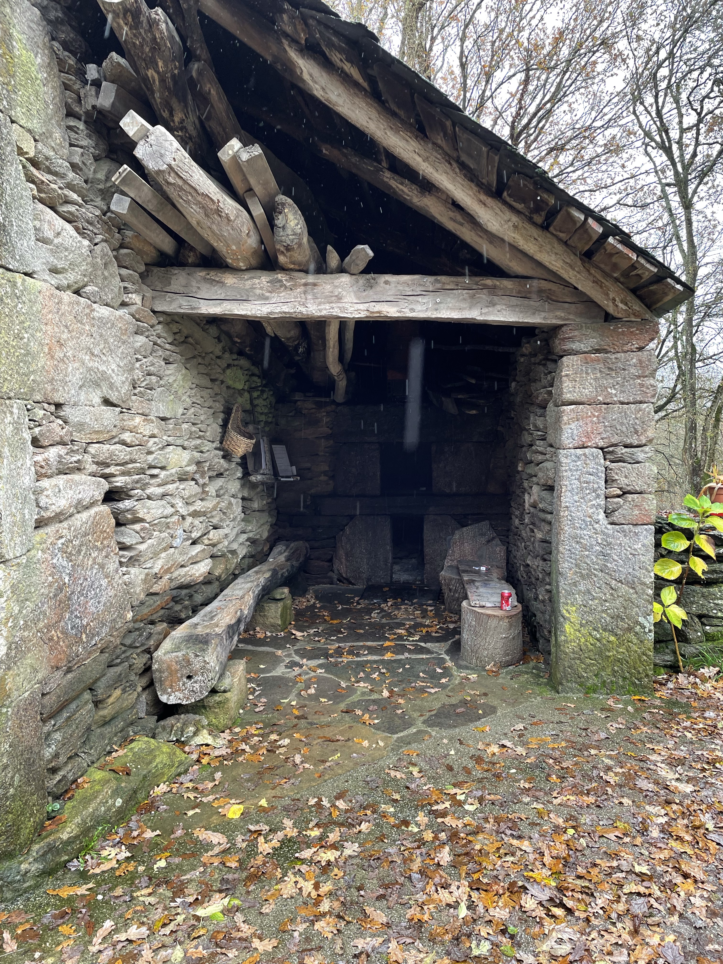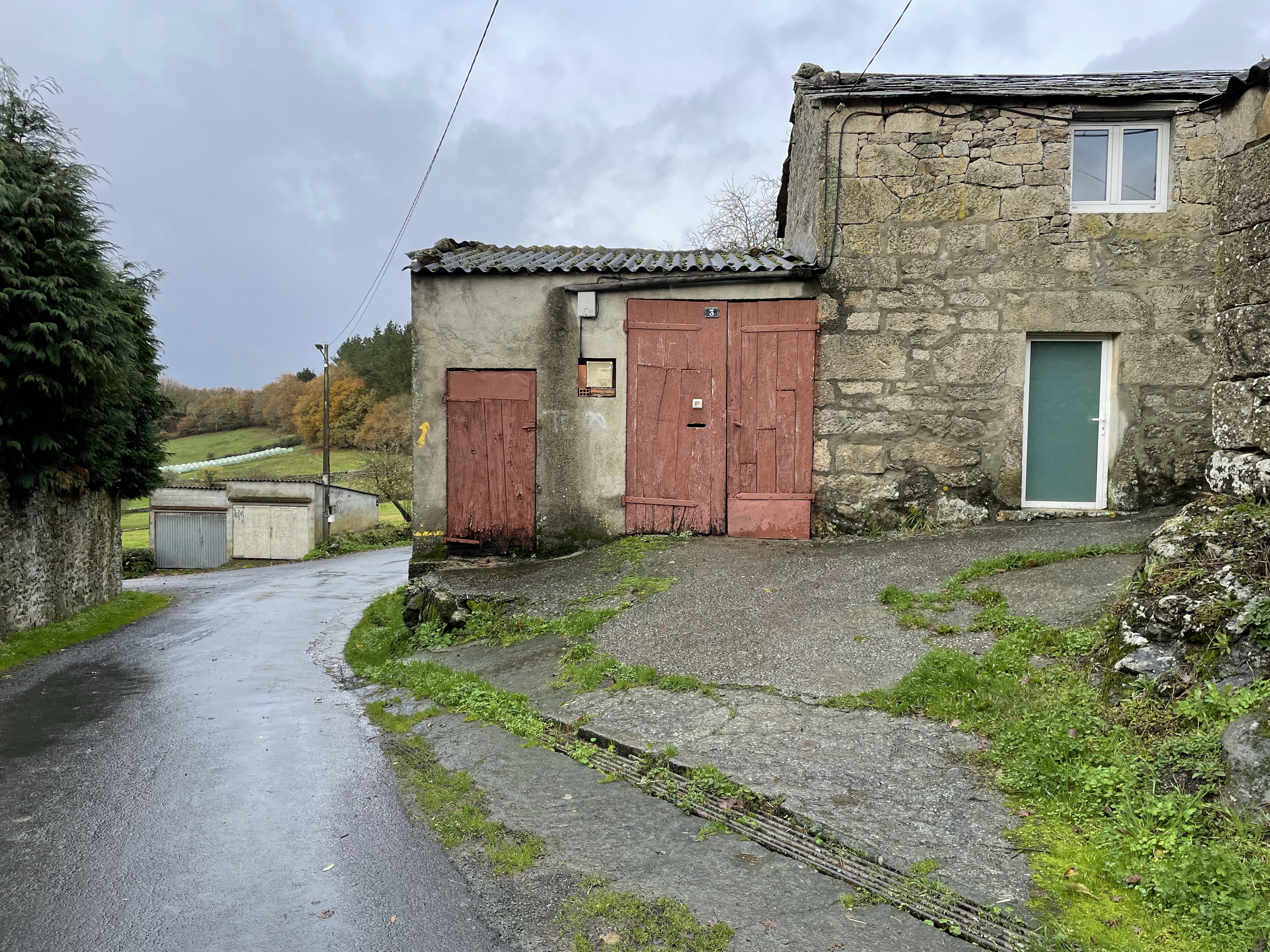 By 2pm, ish, I made it to Bodega Perez, the only place open for lunch in the entire town, except for a pizza place. There were other hikers here as well. We nodded in solidarity and then I ate like a fiend. I had passed so many potentially cute rest stops and restaurants and tiendas, all with alluring signs that said: “Pilgrims welcome,” and “Descanso,” only to be sadly taped over with another sign that said, “Closed for personal reasons.” (You mean, closed because it’s miserable out?). The promise of food, bathrooms or rest does not exist in winter. Fellow pilgrims: plan accordingly. And by all means, get used to peeing in the great outdoors.