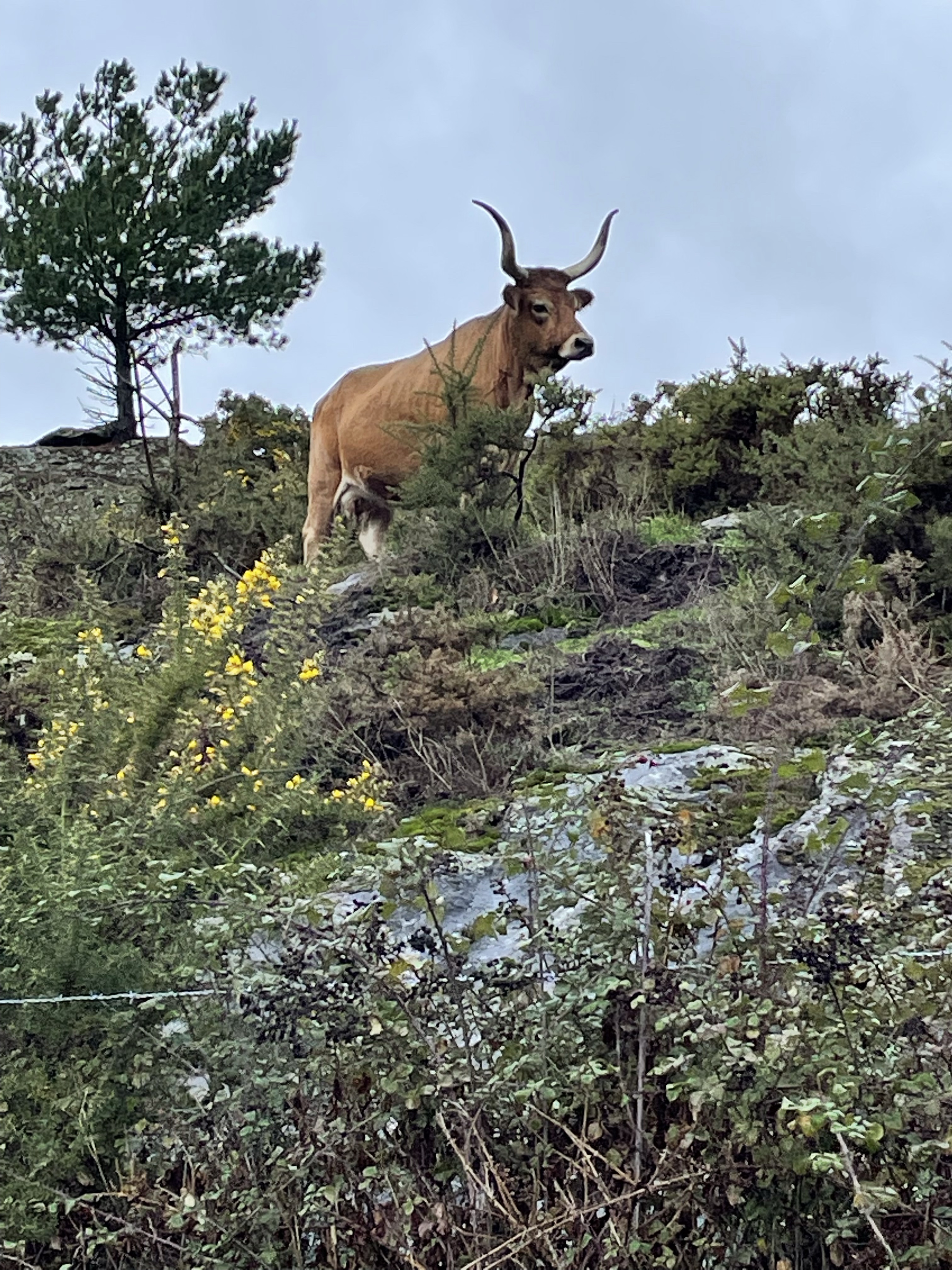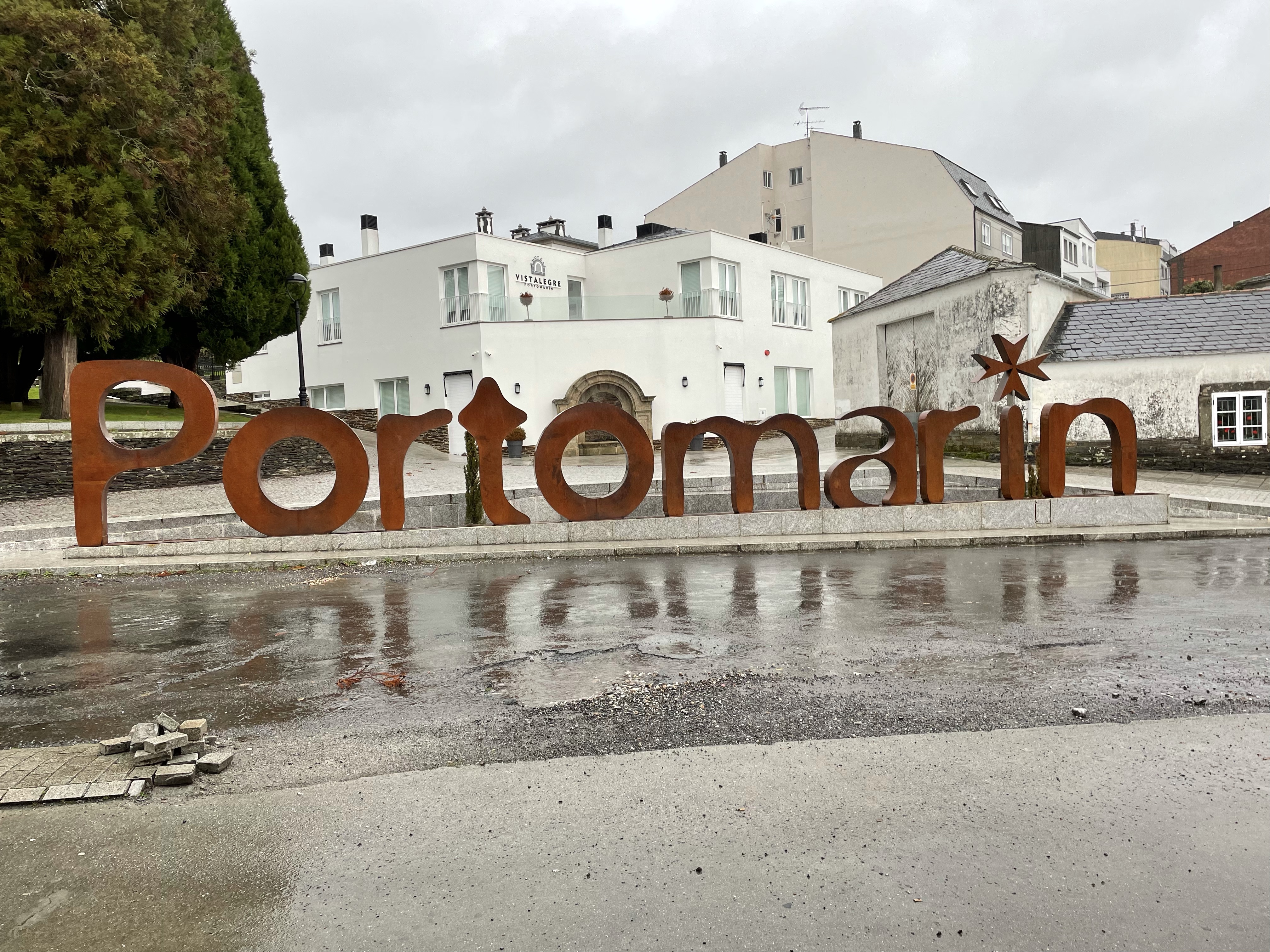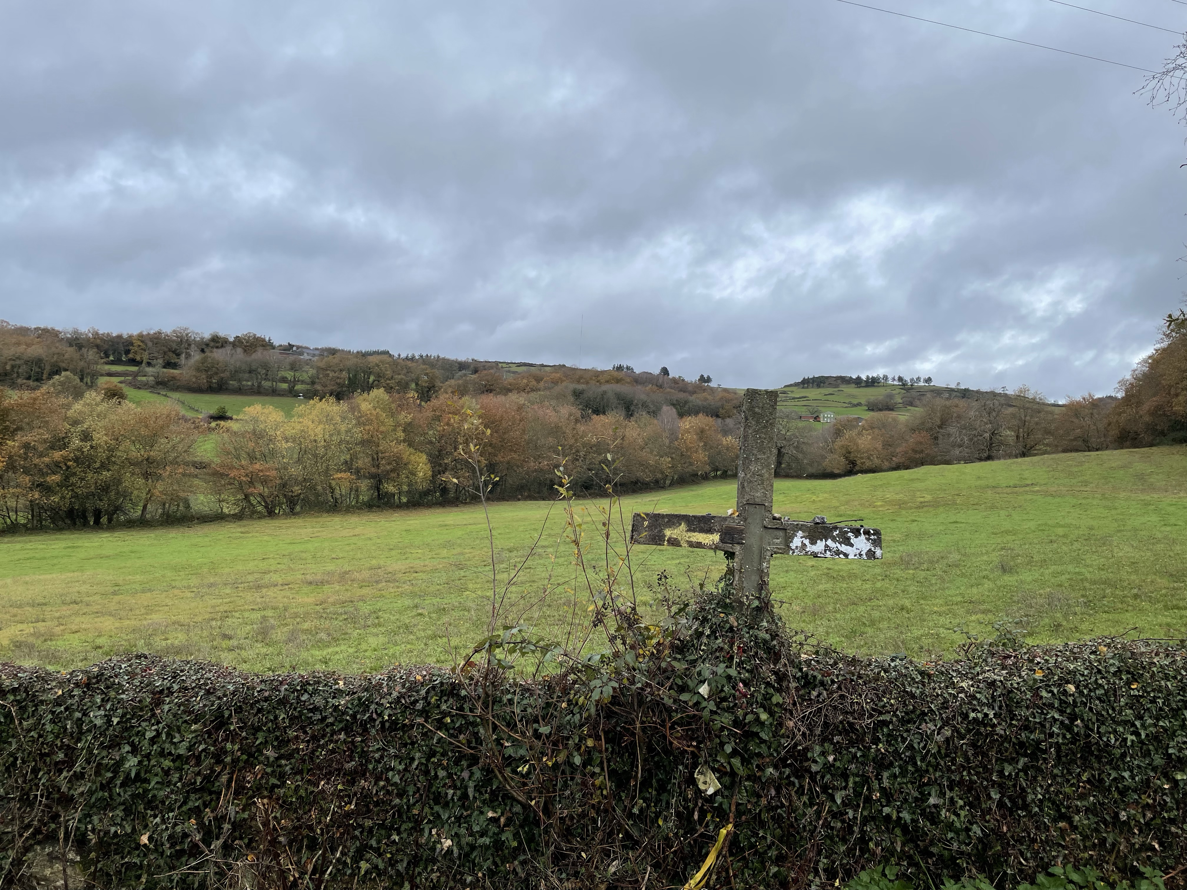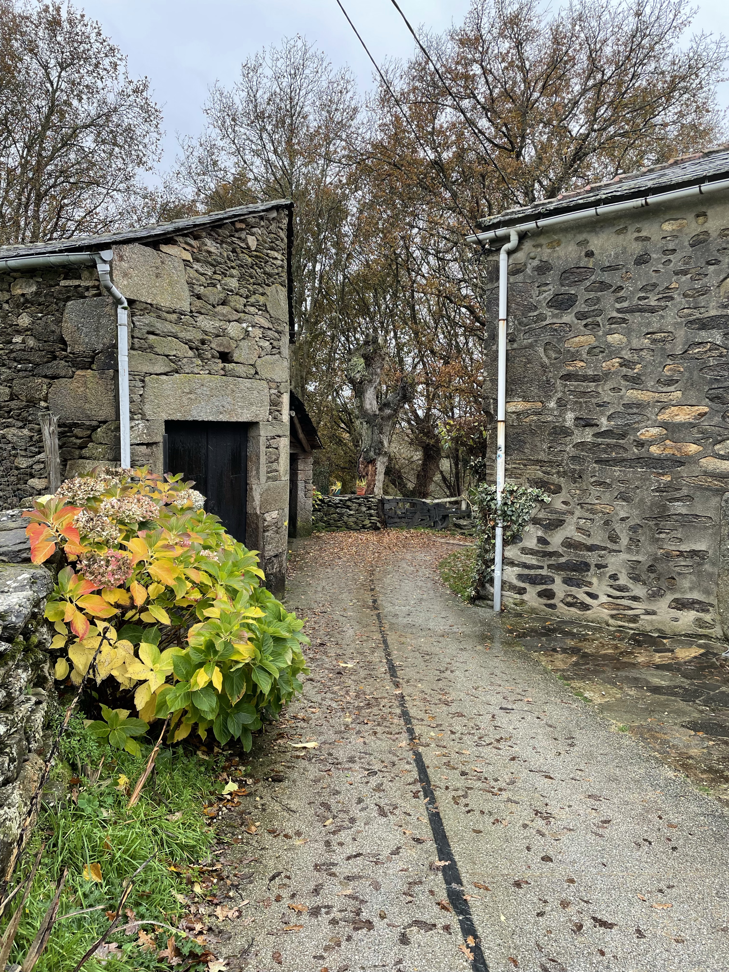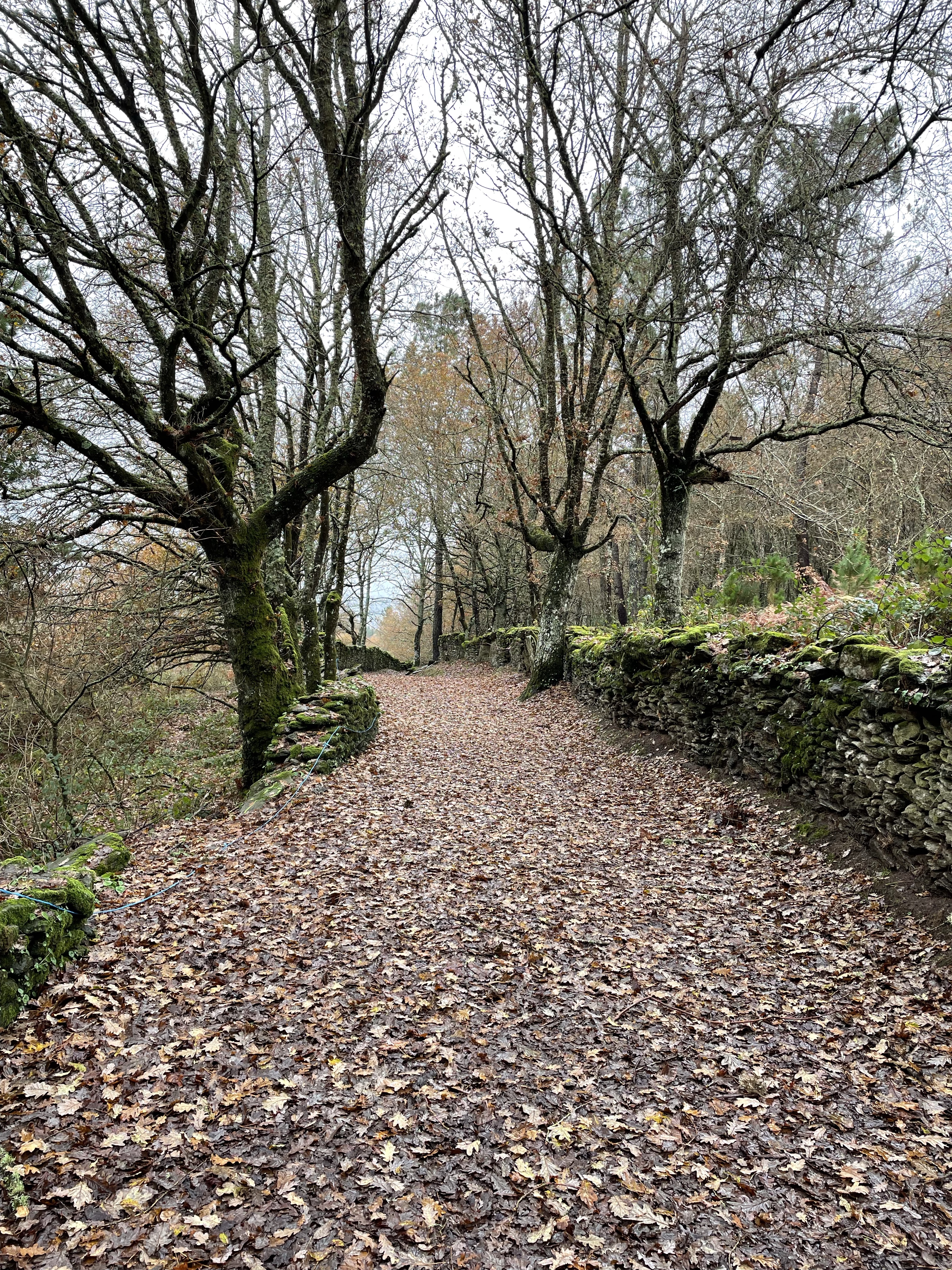 In Galicia, in the month of December, the sun doesn’t rise until 8:47, and even later by end of the month. And so, a late start on the Camino is inevitable if you don’t want to hike during the dark. Today, I hoped that would be 10am but the taxi driver didn’t come until nearly 11 to drop me back off on the Camino at the last place I walked. It was a relatively short hike. Much like yesterday. But the wind and rain were one category short of being a hurricane. Twice I was blown from one side of the street to the other. And the poncho I had hoped to rely on to keep me slightly drier than the day before literally blew into shreds to the point where, after finally finding shelter, I took it off and threw it in the first plastic recycling bin I found. And I thought the following days would be more grueling because they are longer. Distances I’m not accustomed to. But to be honest, today was rough. And yet, I have to say, I couldn’t have been happier to finally be back on the Camino.