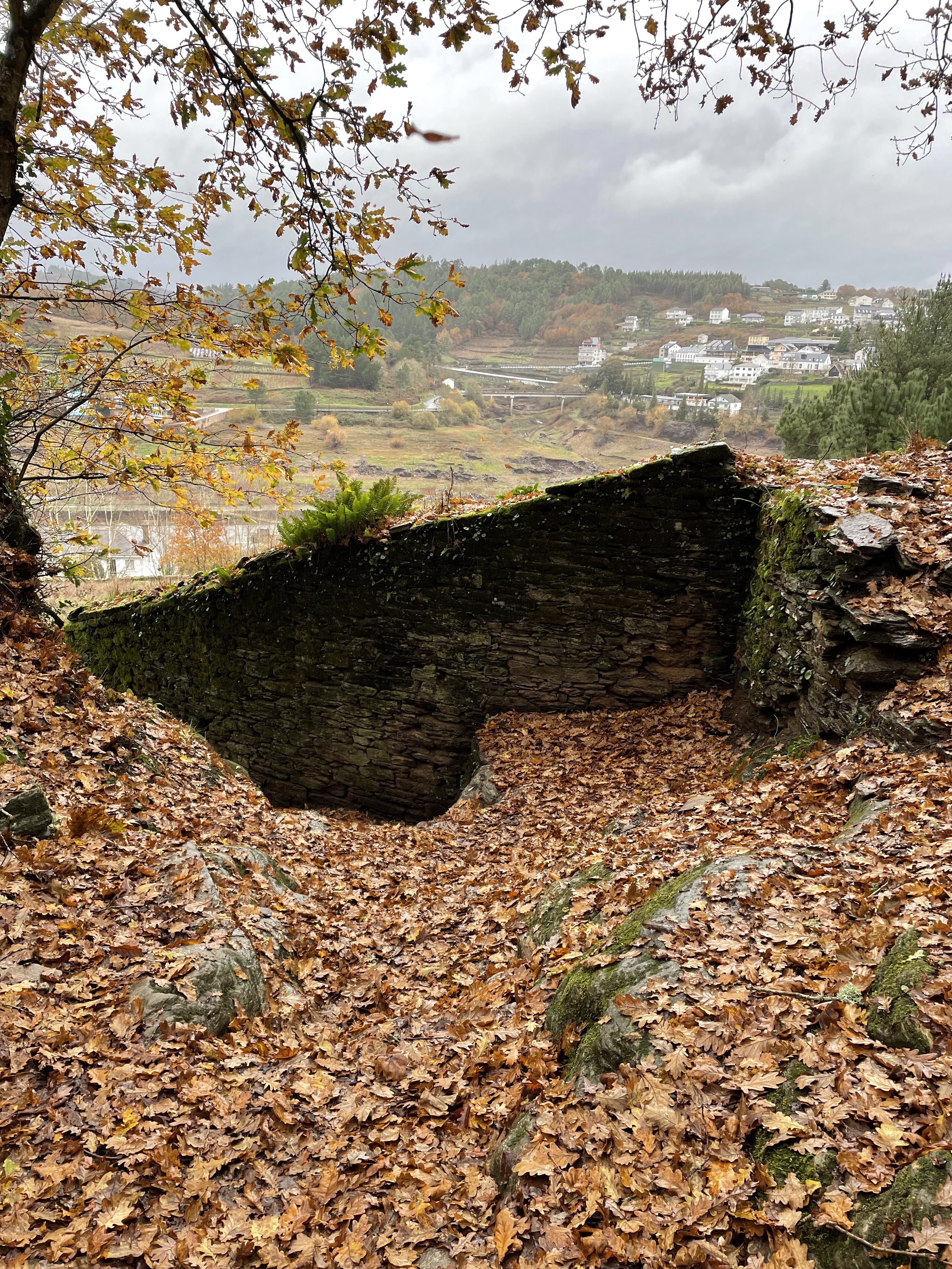 At any rate, the walk itself started out rainy but mildly windy. Gusts of December air slipped through the open spots in my jacket until I zipped it up and donned the ill-fated poncho, which, a peregrino who came up behind me helped me with. The first person I’d seen on the Camino! Someone did say, and it’s a loose quote: There are no bad weather days only bad clothing. And for the most part I have to agree. But by the time I reached Portomarin, the wind was atrocious, the rain was heavy and my feet were noticeably wet. Underneath my clothing, I was relatively dry, but I felt swampy.