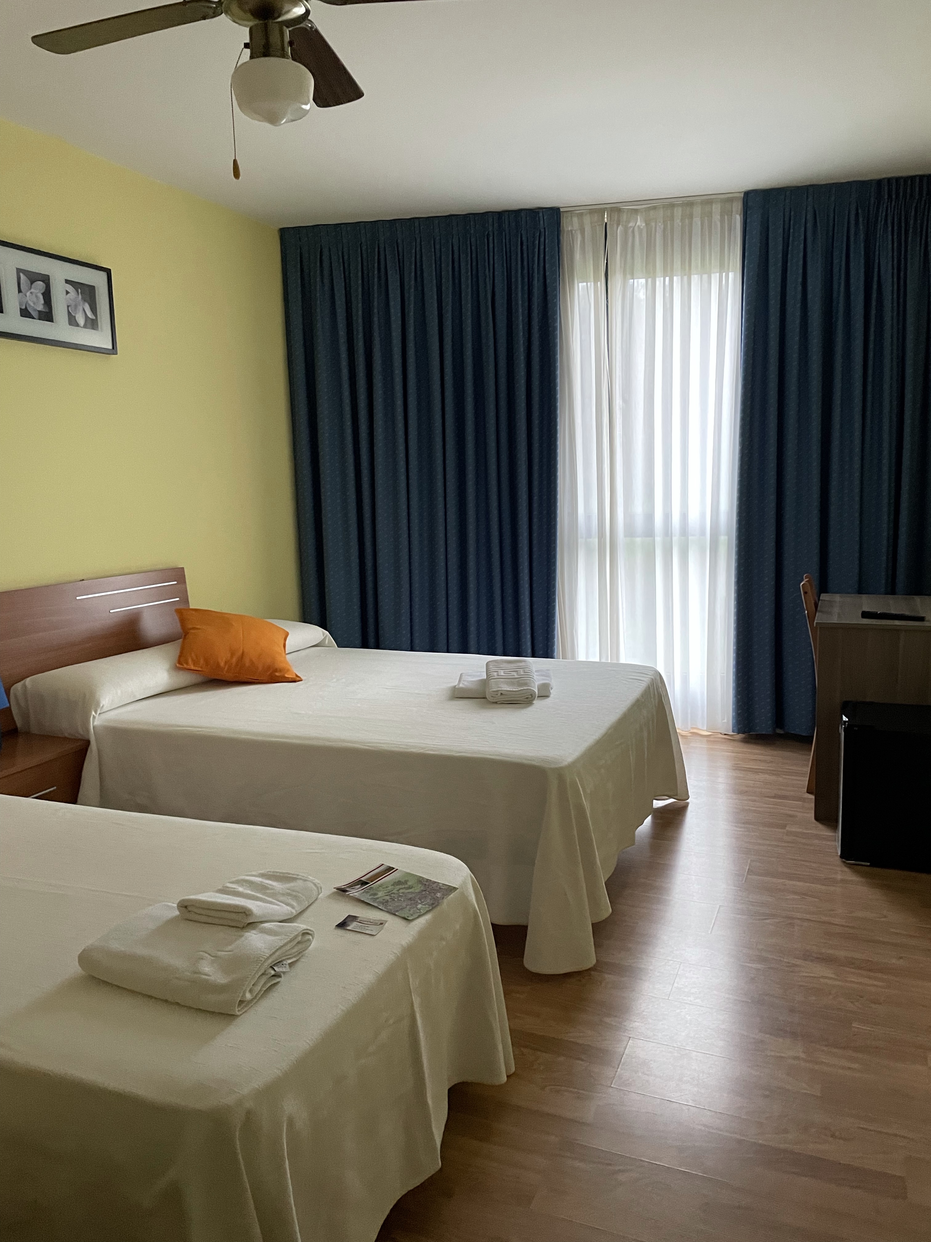 What has been a little rough is losing my morning coffee + writing ritual. Normally, I wake up, have my coffee and write and then eventually have breakfast. Now, I have to wake up, shower, change into my hiking clothes for the day, then, by 8:30, I have to leave my big back, freshly re-packed, at the reception desk so it can be transported to the next accommodation. Only then can i relax a bit, and have coffee. But not in my room. Only in the dining hall. And writing with pen and paper at a cafeteria in Spain just makes me look like an insane person, so I sip my coffee, scarf down my croissant, and scroll through emails on my phone instead. If I have time back in the room before leaving, I will write.